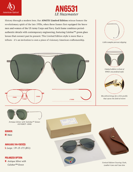 アメリカンオプティカル AO LE Hazemaster AN6531 664 シルバー/グリーン 59mm